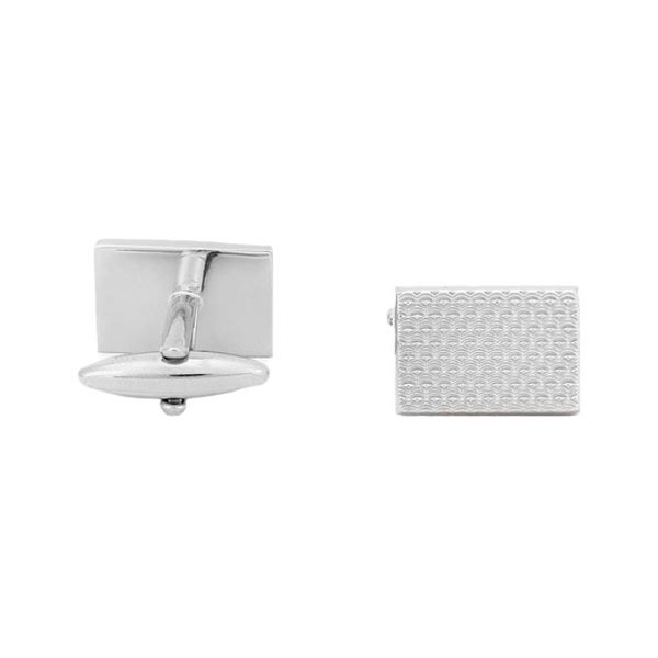 A pair of silver-toned cufflinks, secured with bullet back closure